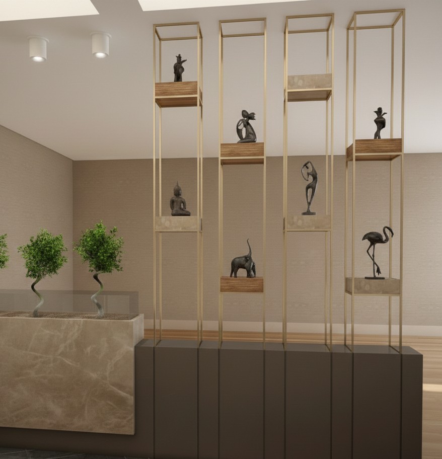 Transform your space with the Golden Metal Partition Set – a statement of style, a display of art, and a testament to refined living.